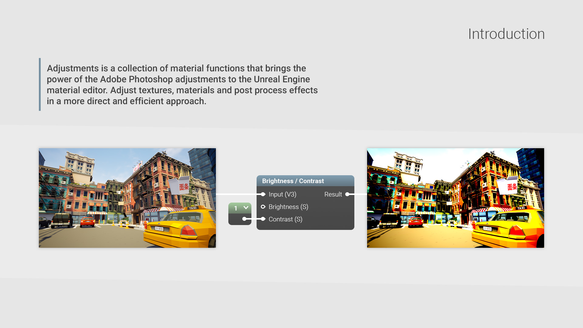 Adjustments is a collection of 14 unique material functions that can be used to adjust textures, materials and post process effects in Unreal Engine. Created with the professional artist in mind, these material functions can be used to add subtle improvements to your work or even create something completely new!