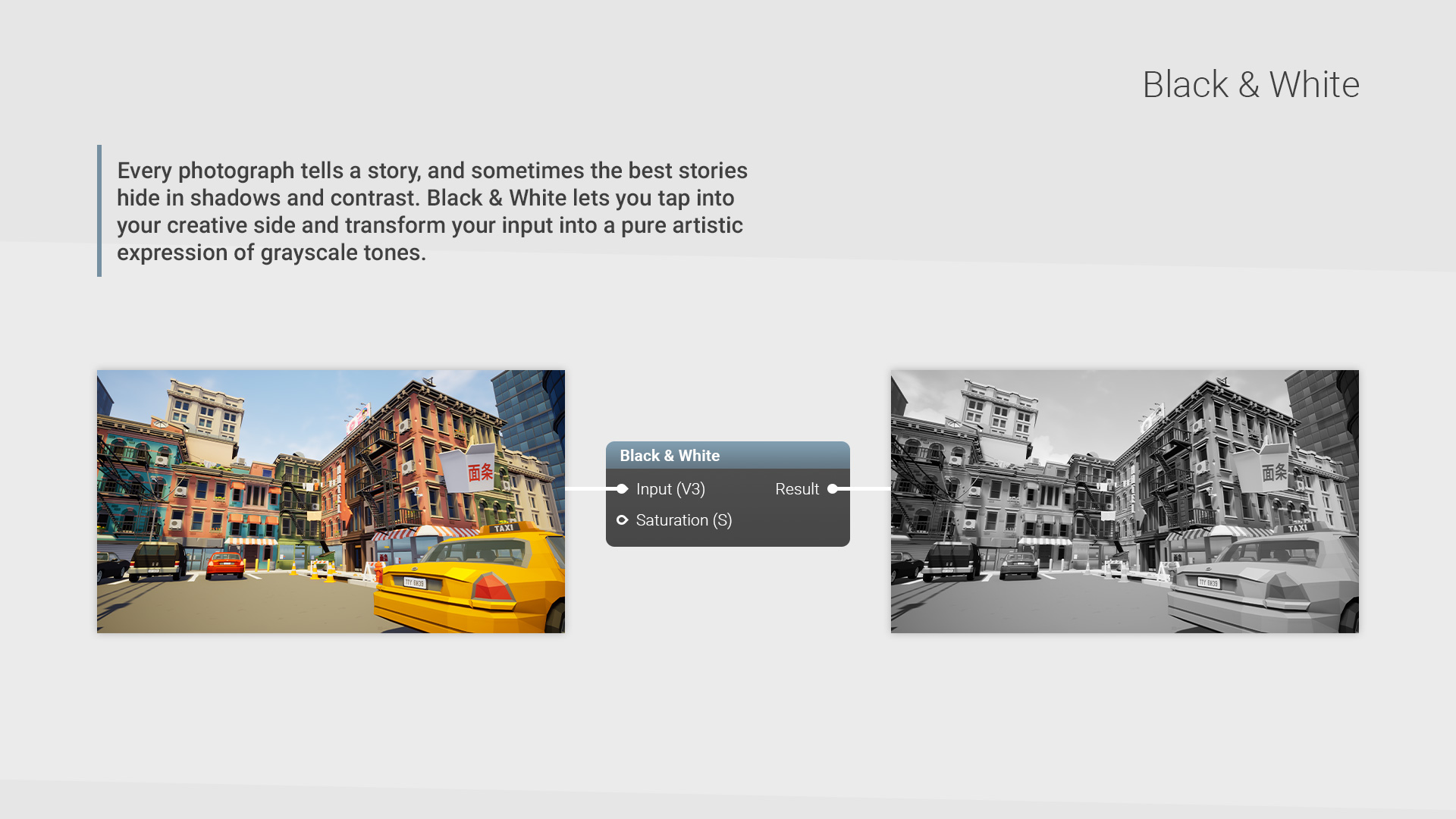 The Adjustments collection has been inspired by Adobe Photoshop's commonly used adjustments, in order to help you achieve similar results in a more direct and efficient approach.