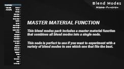 This Blend Modes pack includes a master material function that combines all blend modes into as single node. This node is perfect to use if you want to experiment with a variety of blend modes to see which one that fits the best.