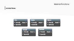 Finally, the Waves module contains a library of five central periodic waveforms, including Sine, Cosine, Sawtooth, Square, and Triangle. These waveforms are widely used in digital fields and are the backbone of audio, video, and image processing. With Waves, you can create a variety of stunning visual effects, such as flickering lights, animated textures, post-process effects, mesh offsets, and much more. The included example files demonstrate the limitless possibilities created by Waves, allowing you to achieve the desired visual effects with ease.