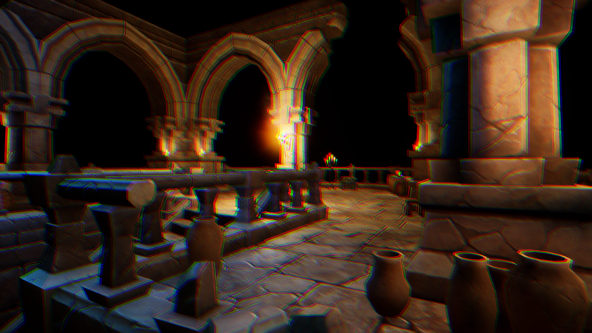 This chromatic aberration post process shader has been created in Unreal Engine. The shader is interactive through exposed material parameters, which allow the developer to modify various properties.