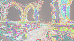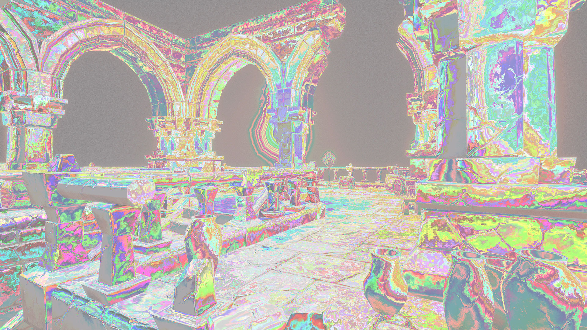 This displace post process shader has been created in Unreal Engine. The shader is interactive through exposed material parameters, which allow the developer to modify various properties.