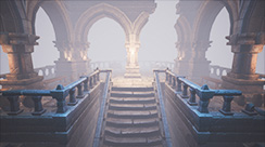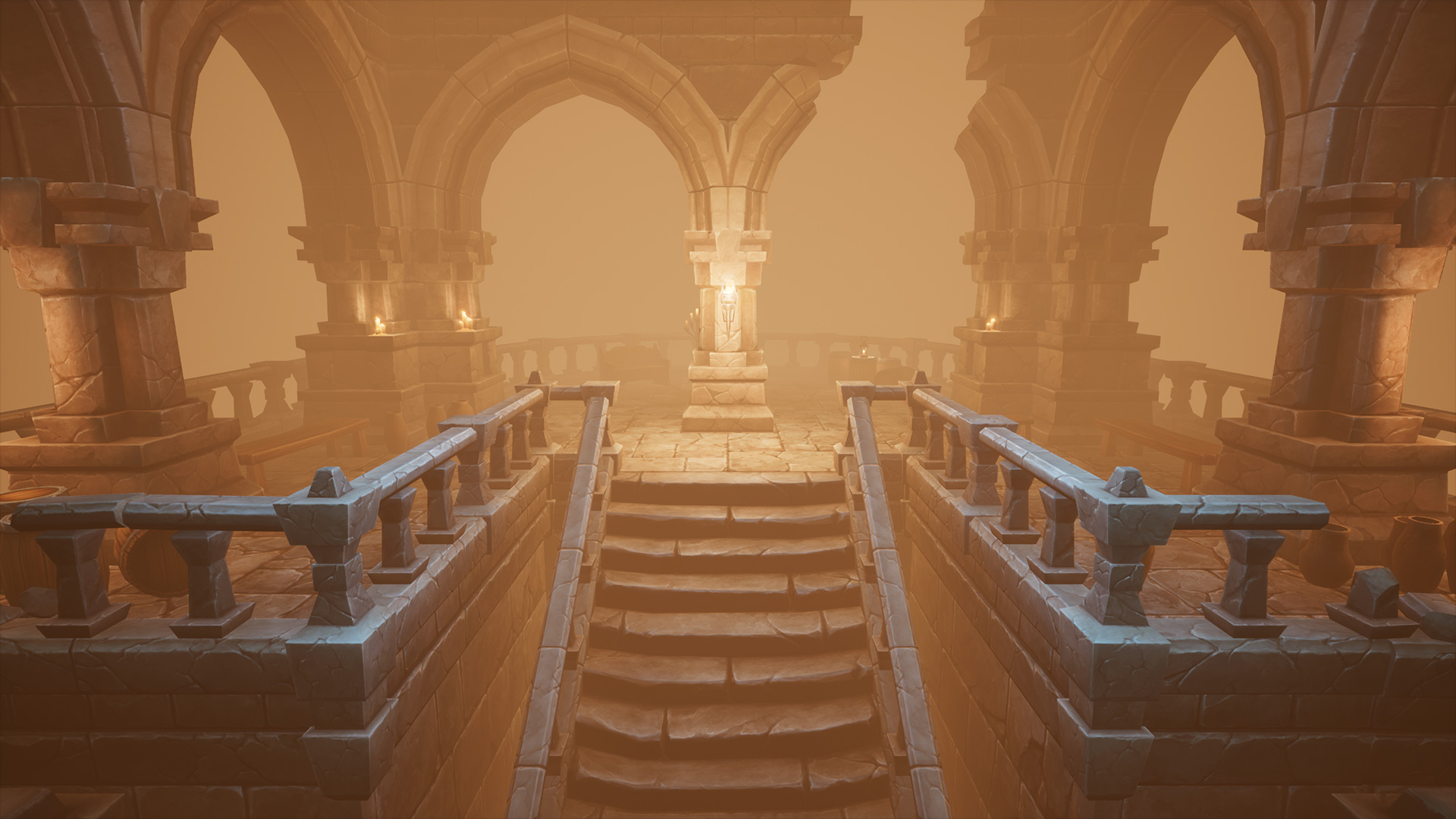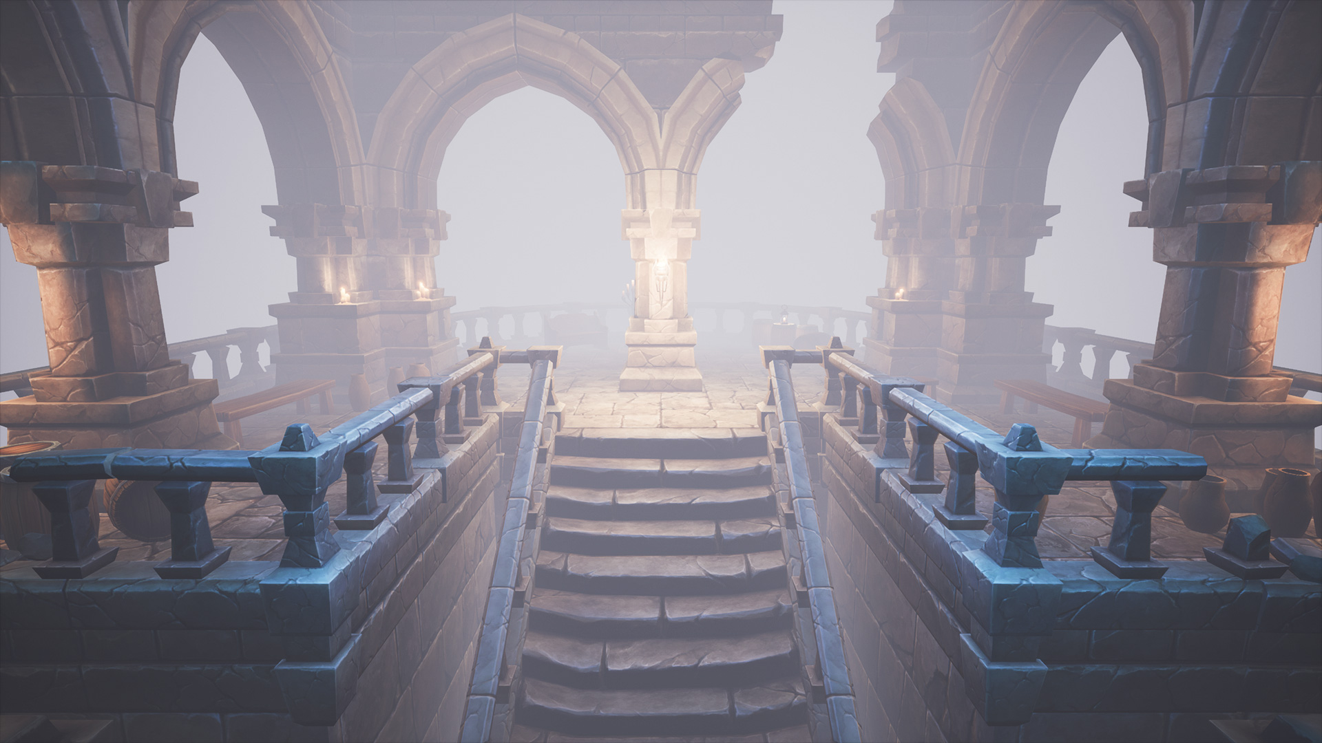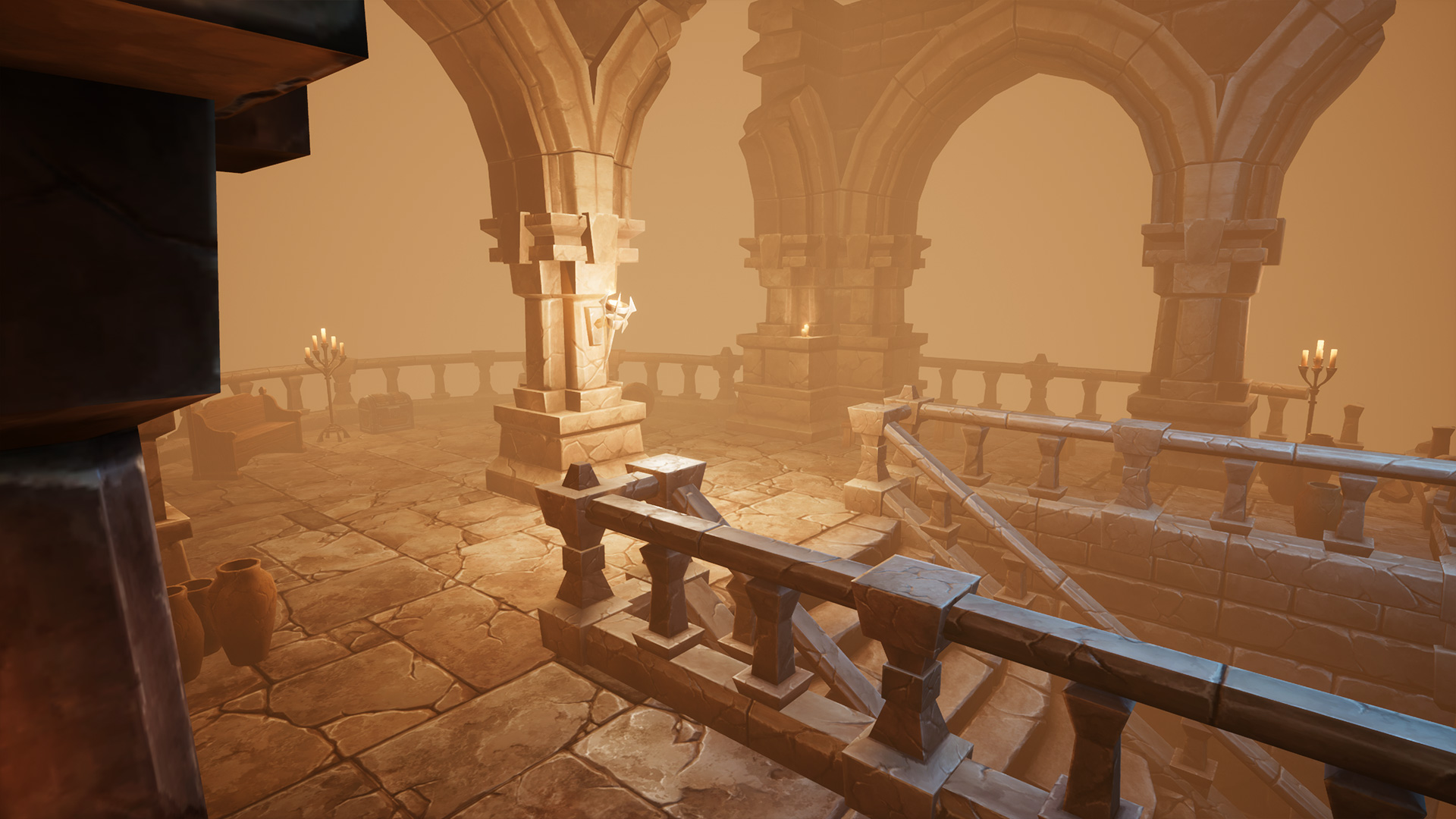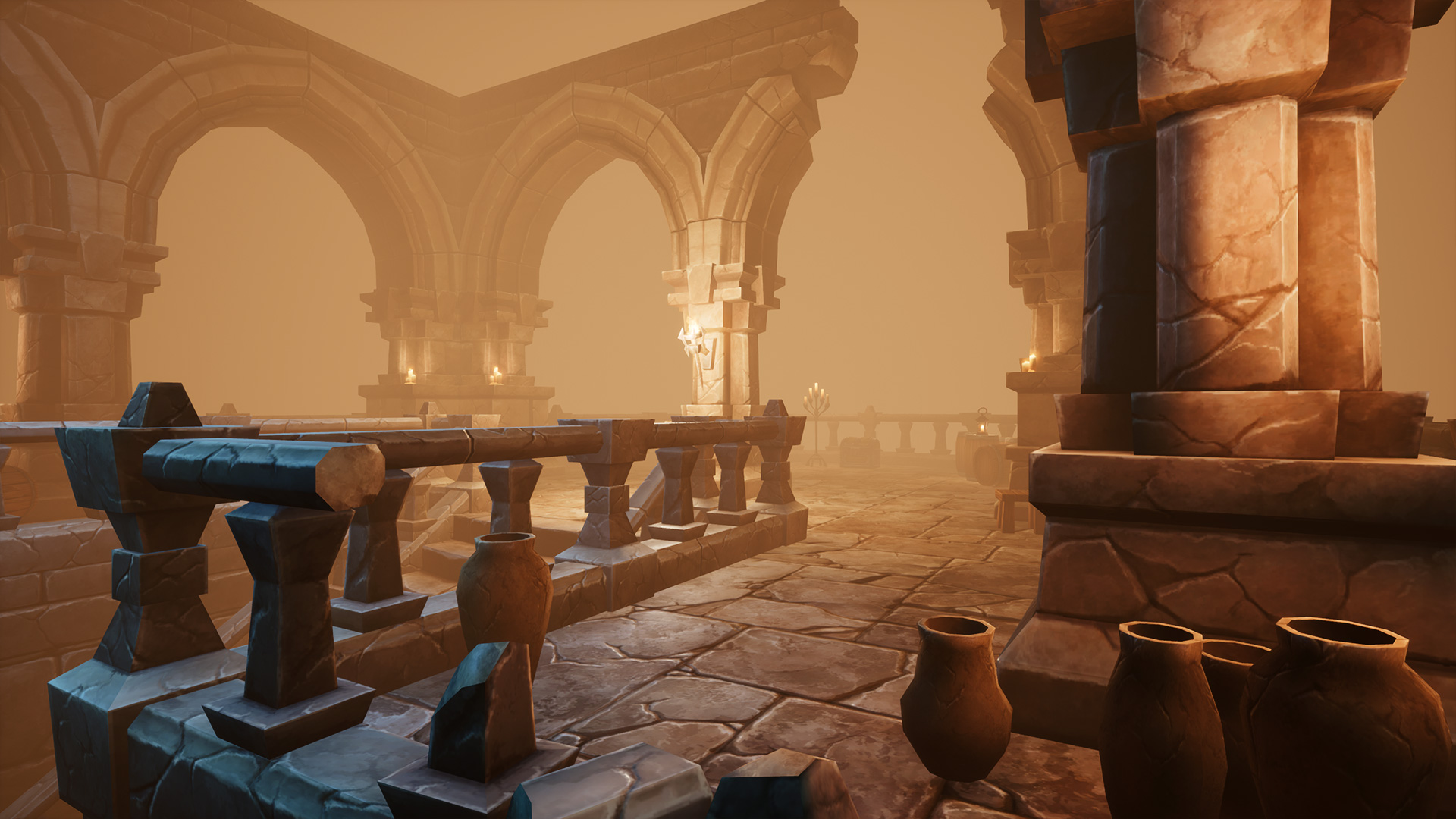 This fog post process shader has been created in Unreal Engine. The shader is interactive through exposed material parameters, which allow the developer to modify various properties.