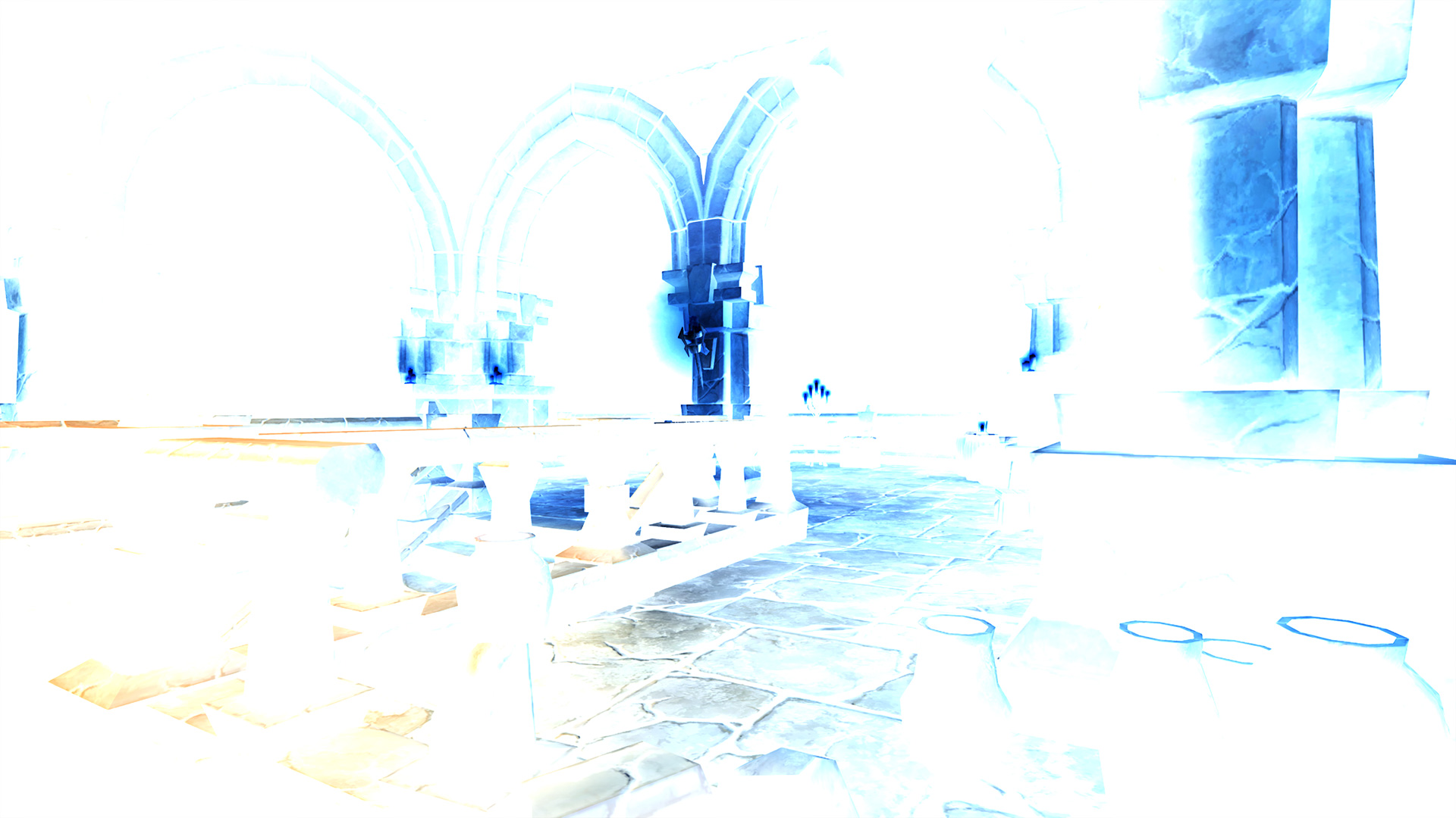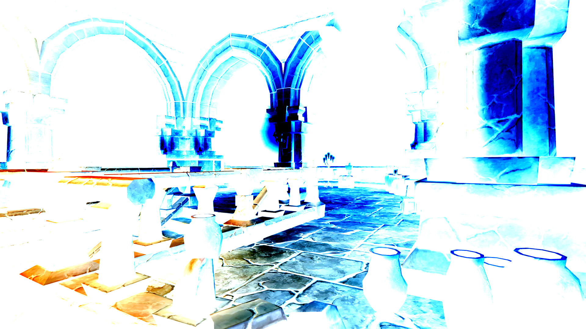 This invert post process shader has been created in Unreal Engine. The shader is interactive through exposed material parameters, which allow the developer to modify various properties.