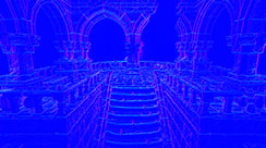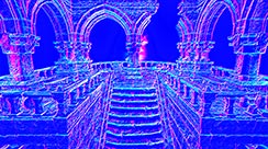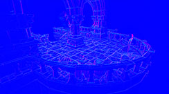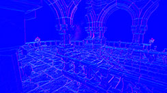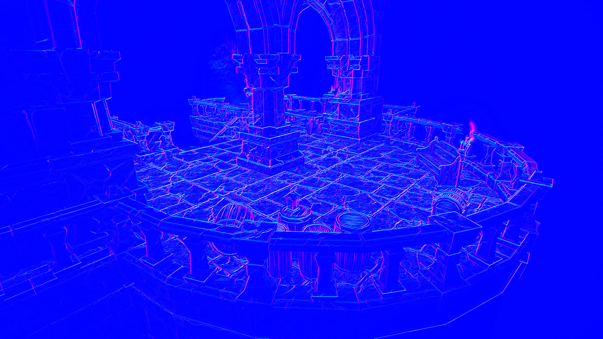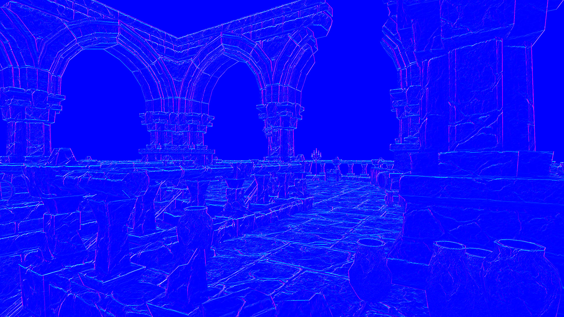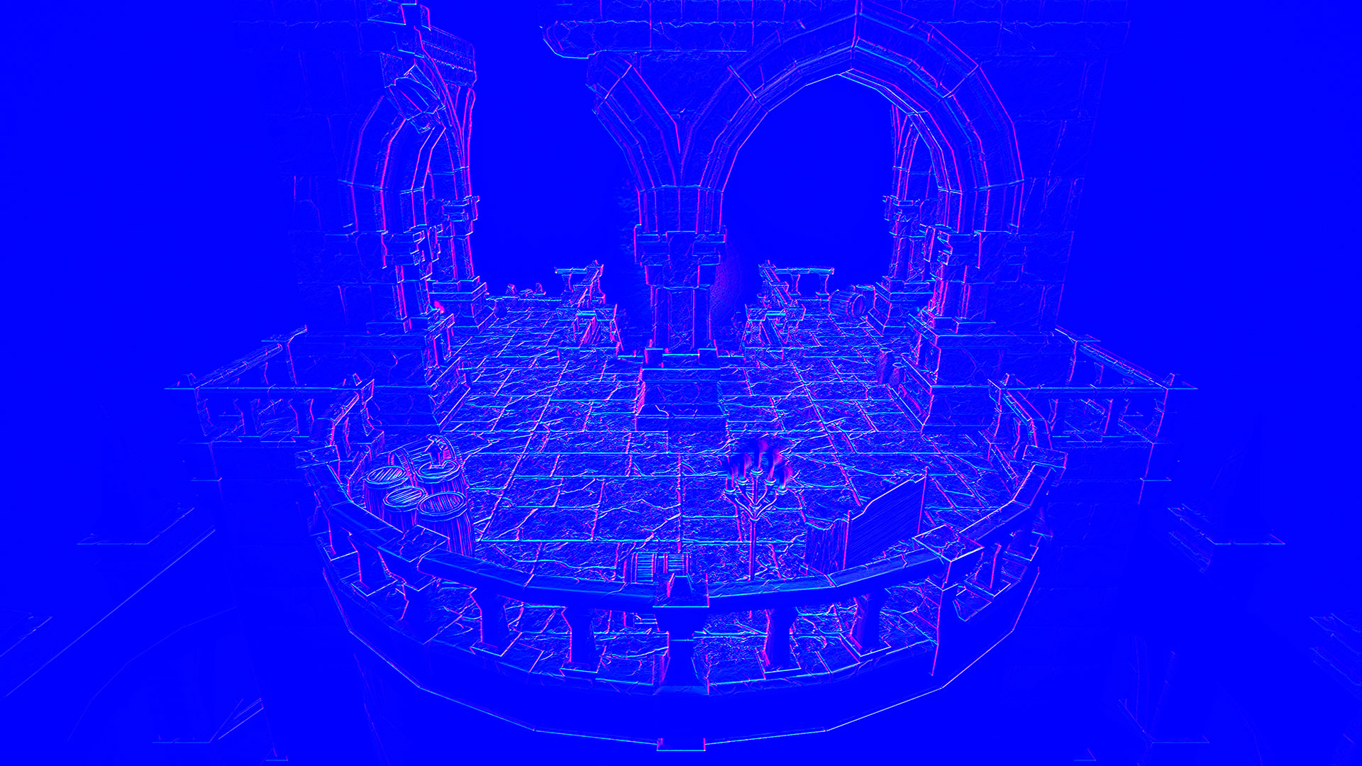 This normal world post process shader has been created in Unreal Engine. The shader is interactive through exposed material parameters, which allow the developer to modify various properties.