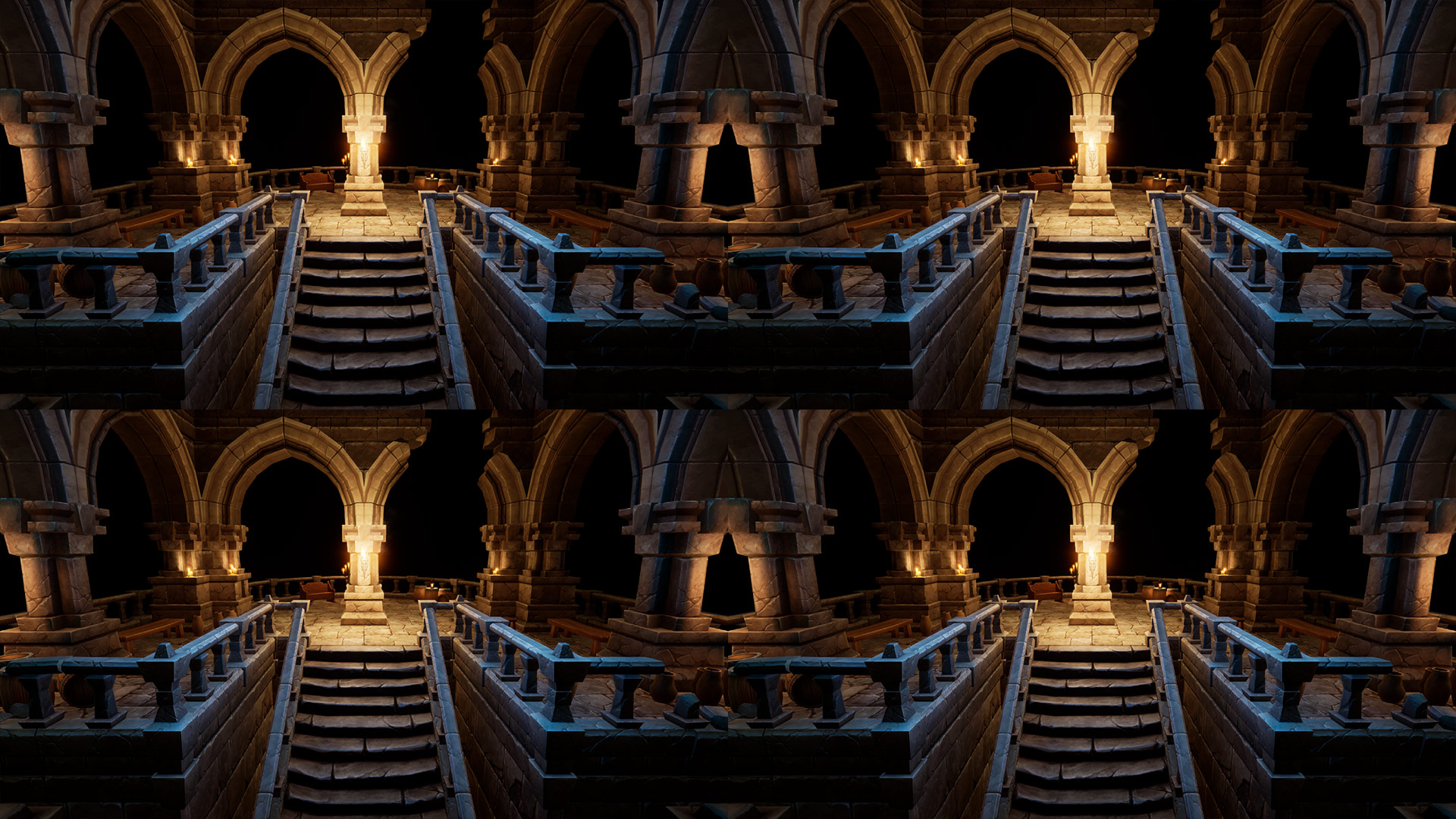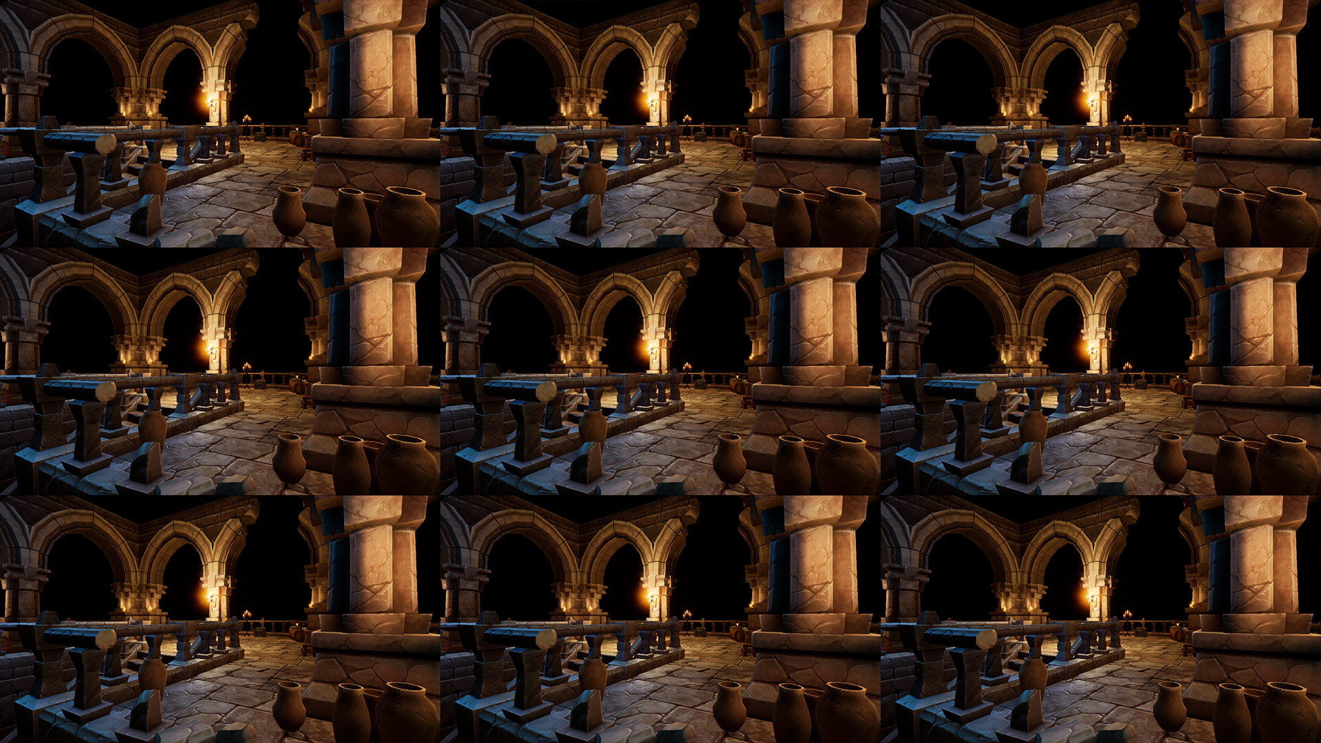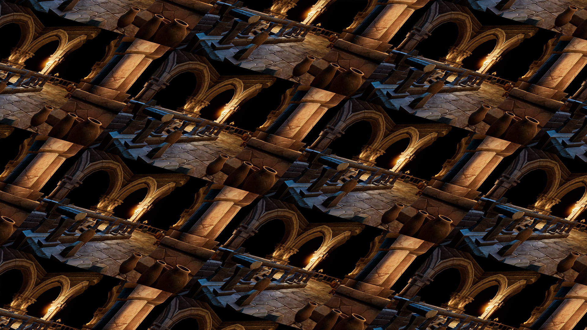 This tiles post process shader has been created in Unreal Engine. The shader is interactive through exposed material parameters, which allow the developer to modify various properties.
