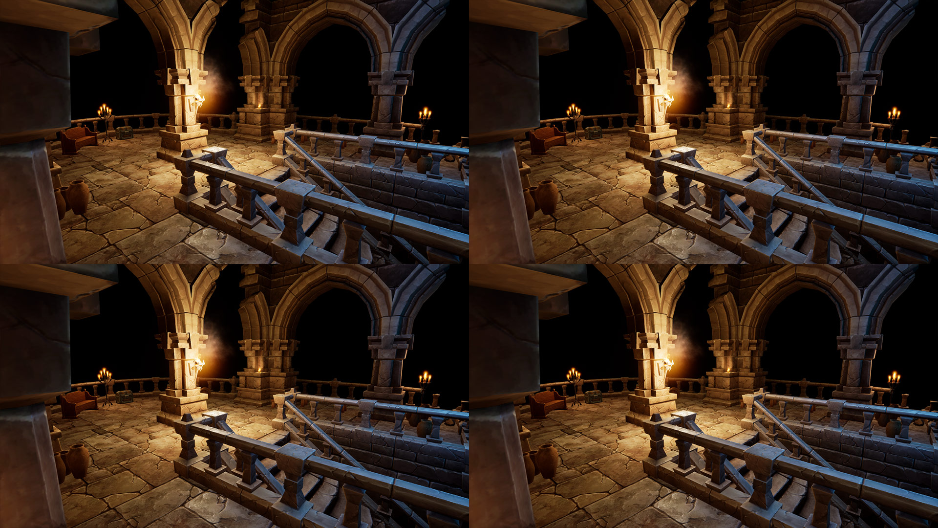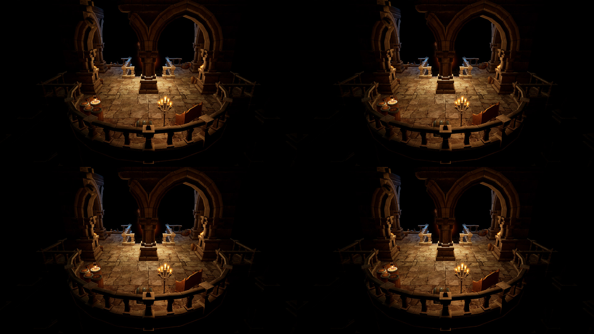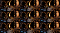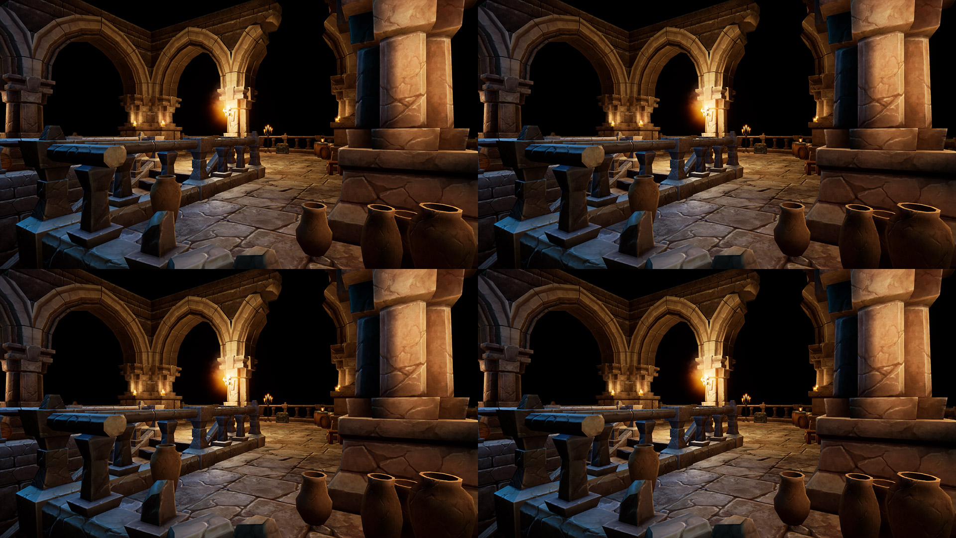 This tiles post process shader has been created in Unreal Engine. The shader is interactive through exposed material parameters, which allow the developer to modify various properties.