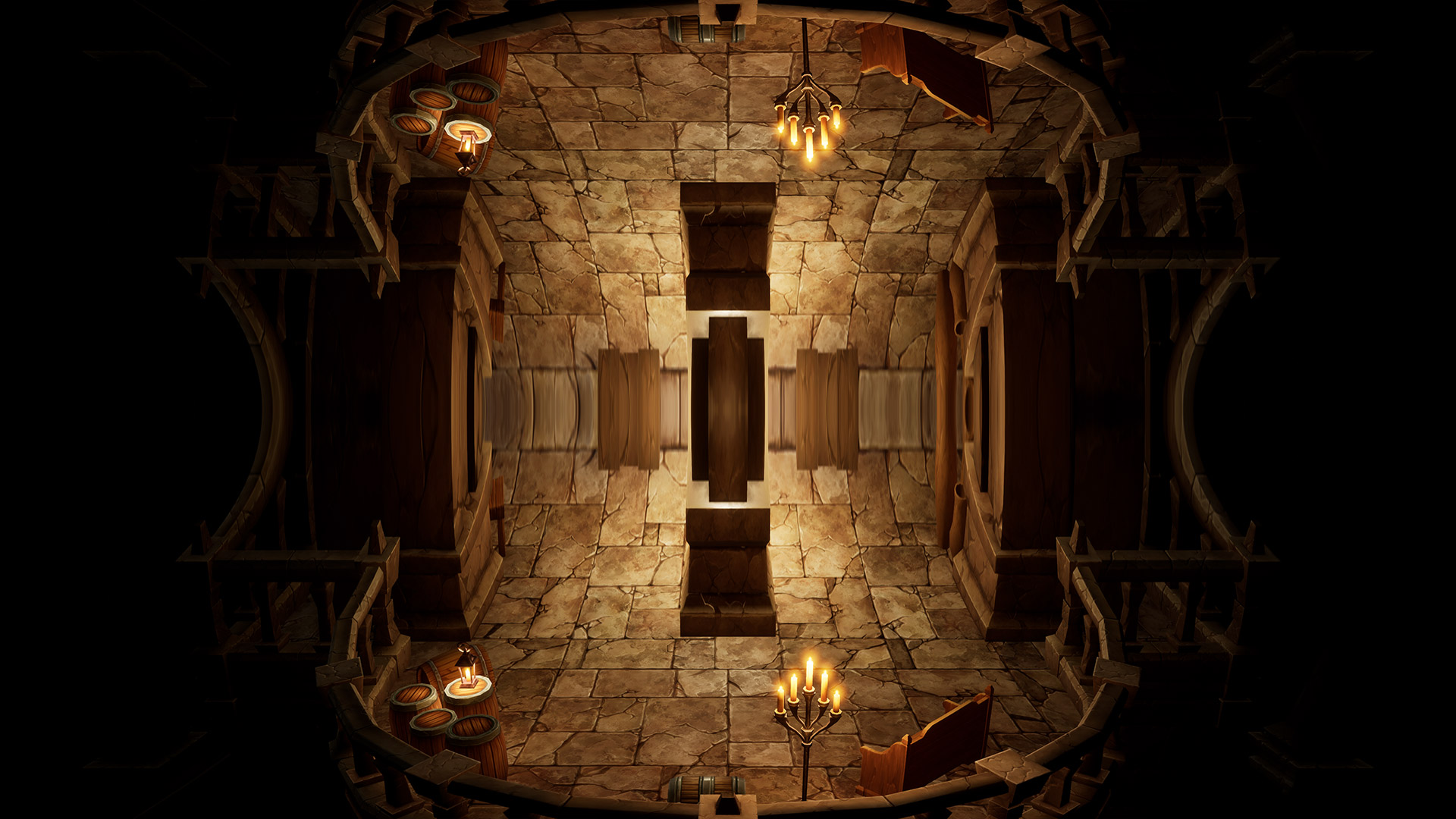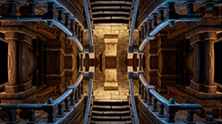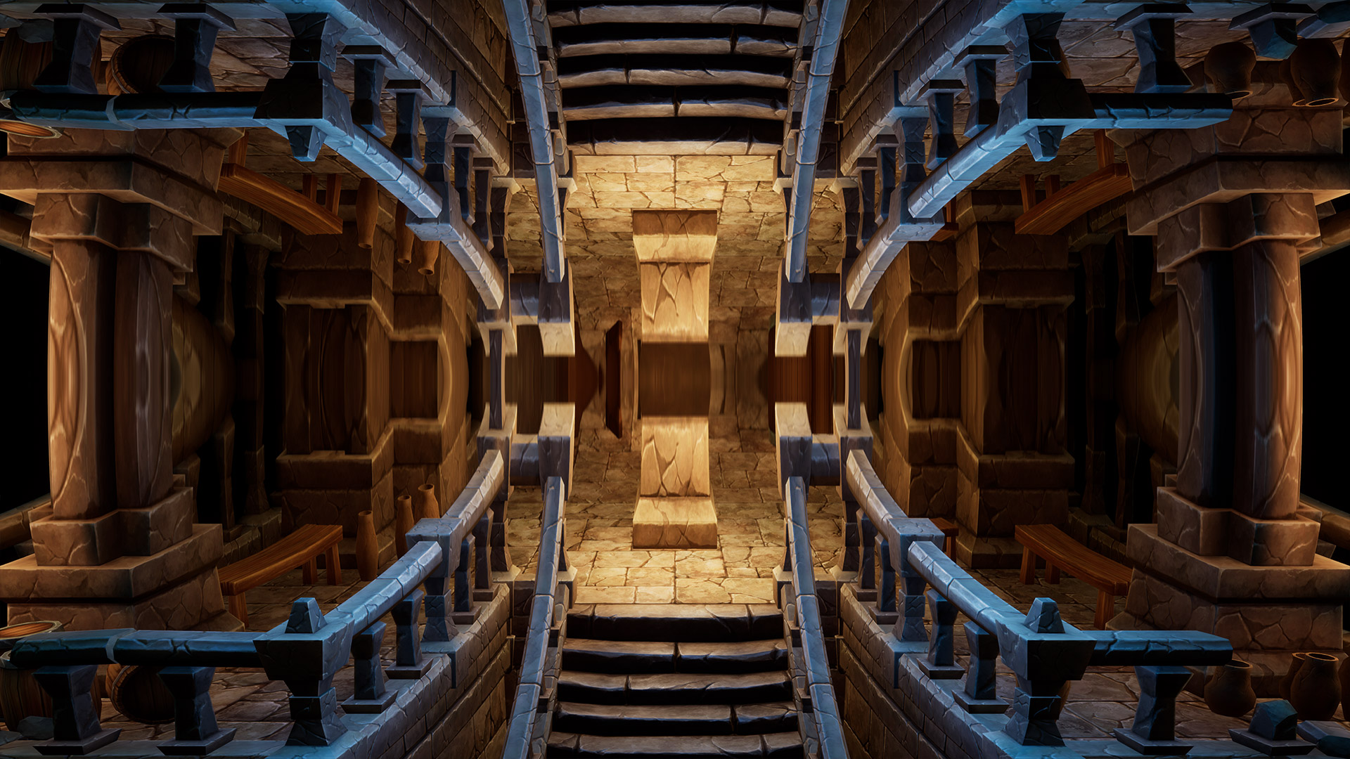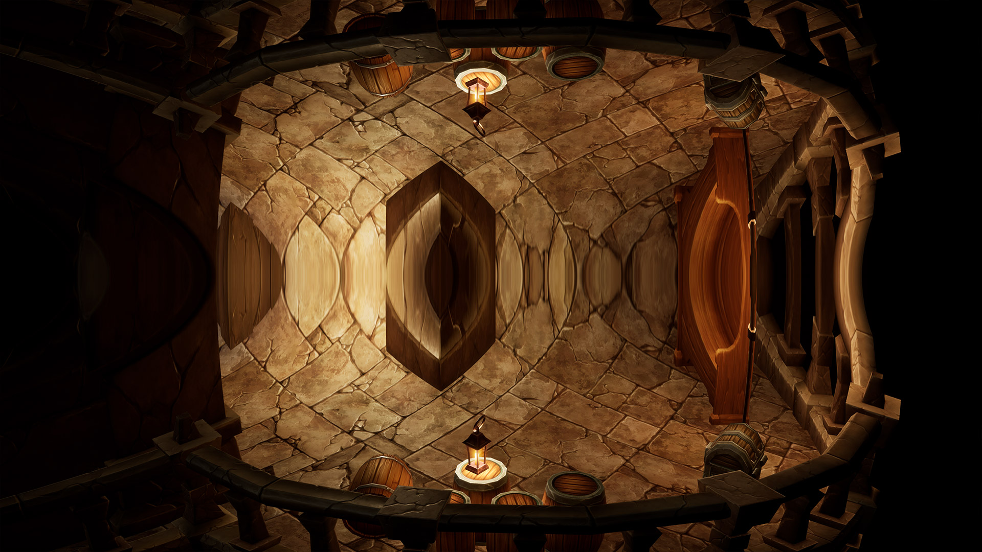 This world mirror post process shader has been created in Unreal Engine. The shader is interactive through exposed material parameters, which allow the developer to modify various properties.