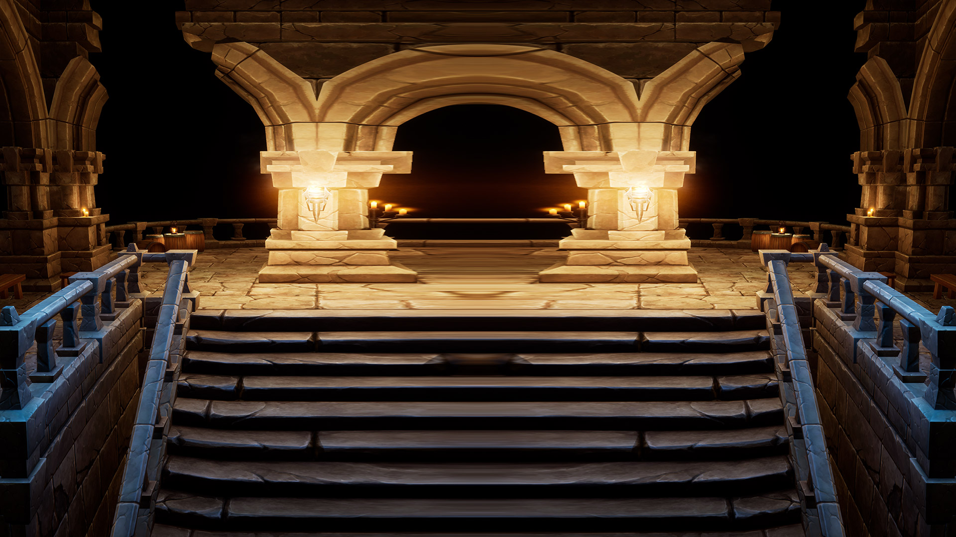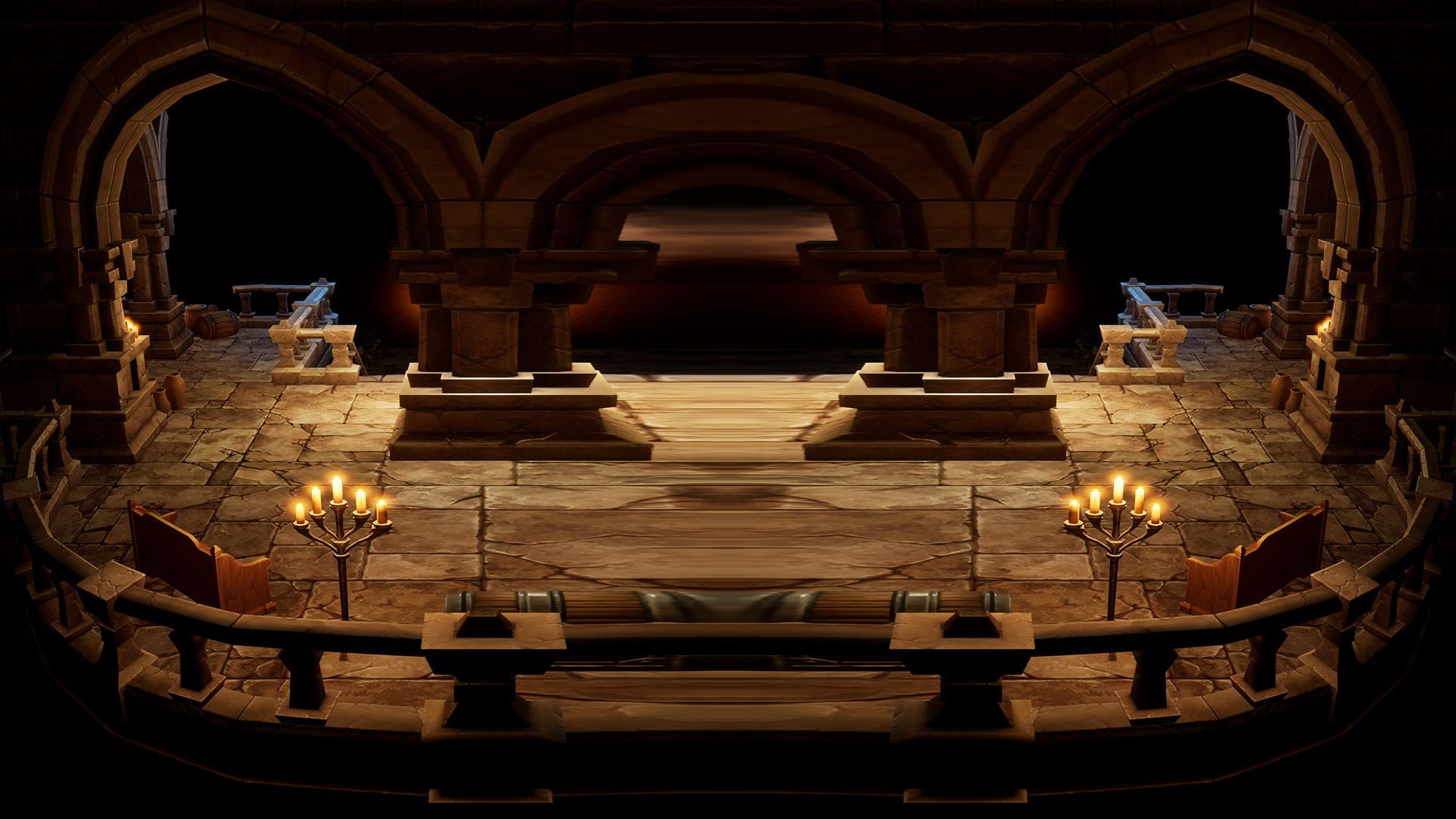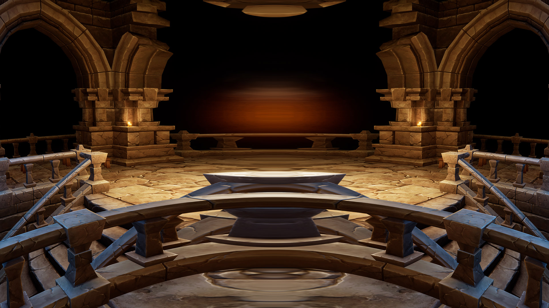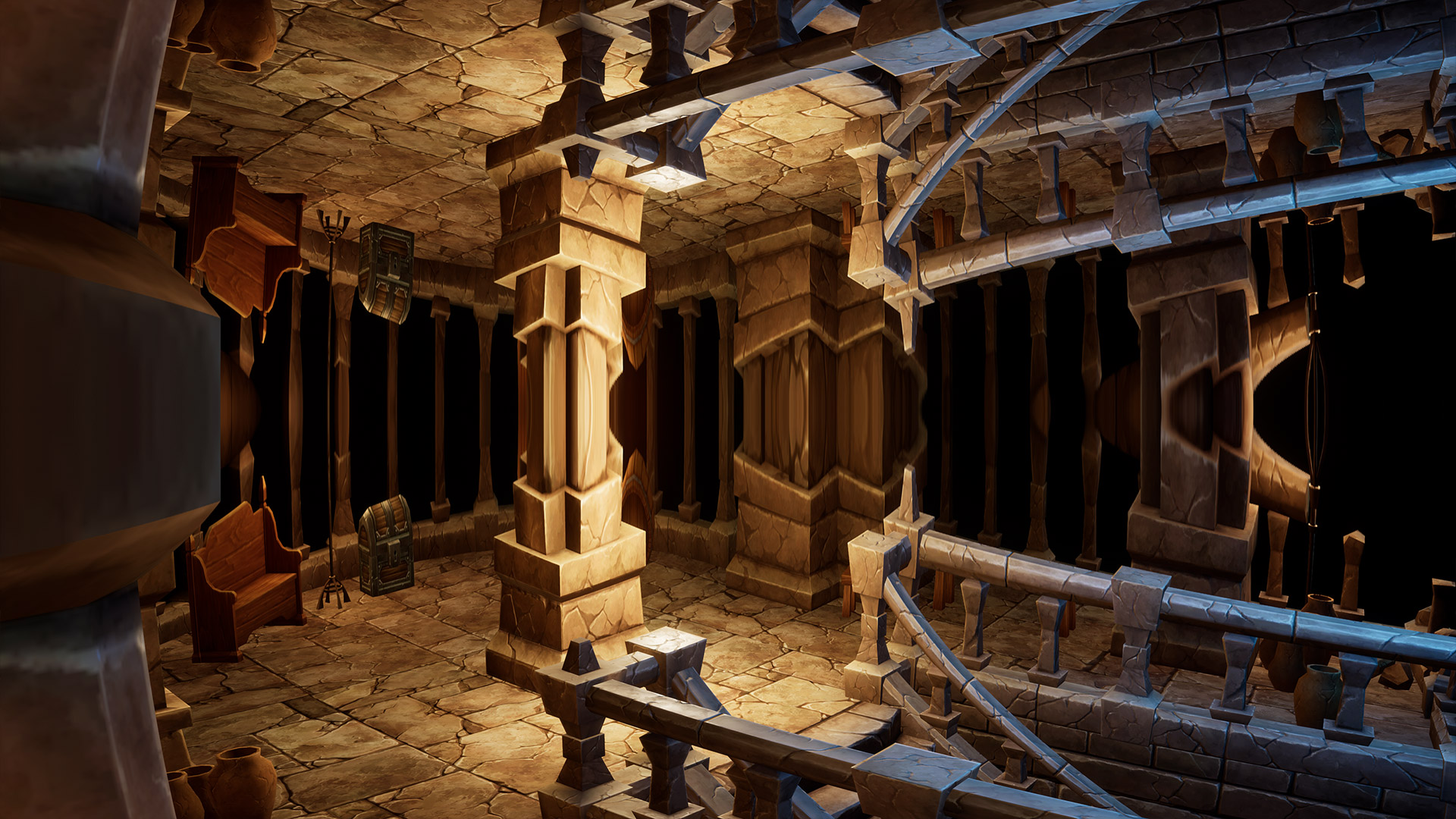 This world mirror post process shader has been created in Unreal Engine. The shader is interactive through exposed material parameters, which allow the developer to modify various properties.