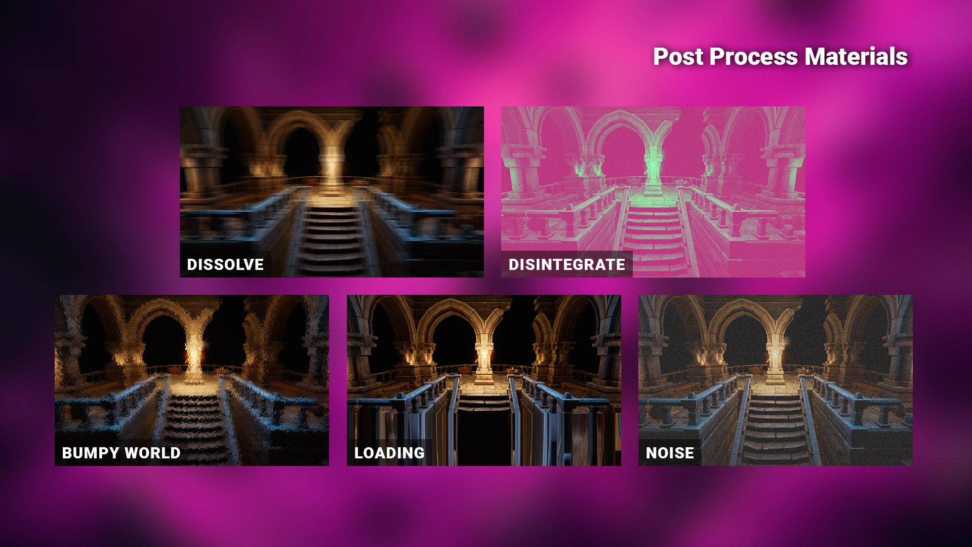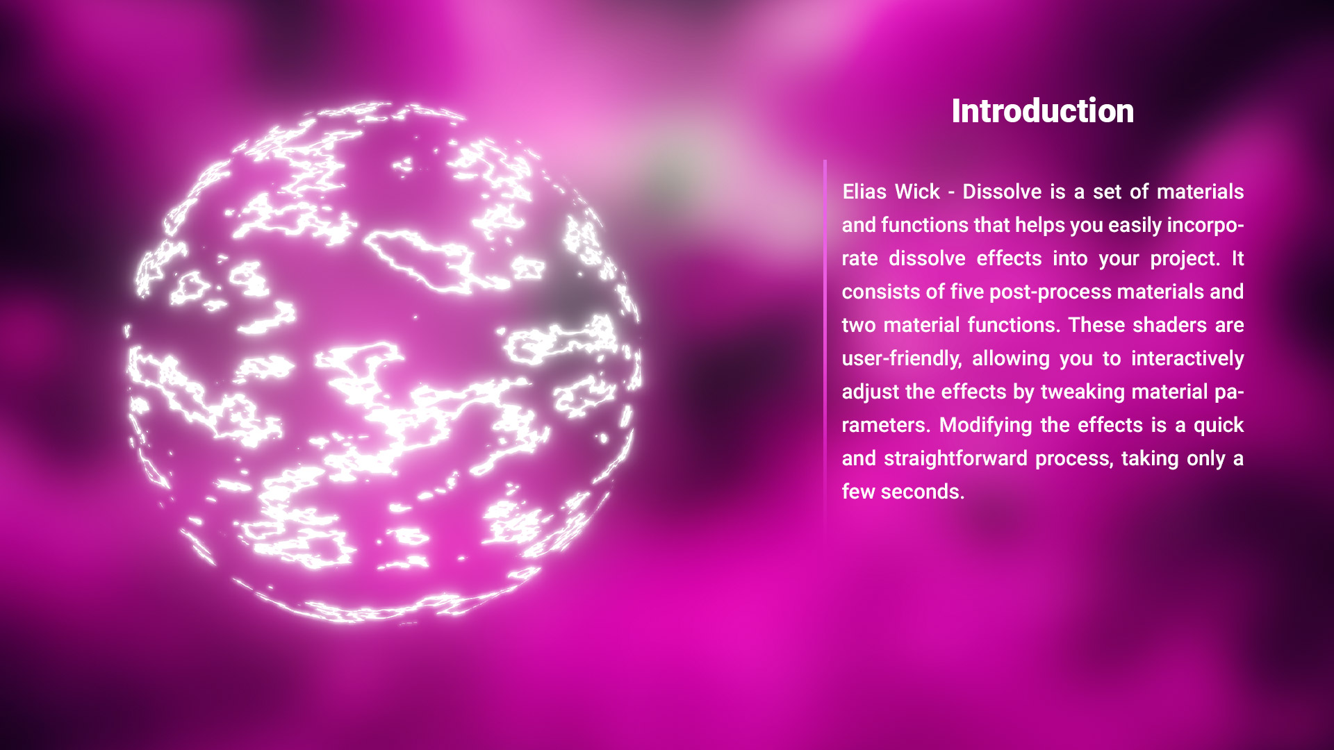 Dissolve introduces a fantastic solution to effortlessly add dissolve effects into your Unreal Engine projects. Unleash the creative potential of five distinct post process materials and two material functions, providing you with a versatile toolkit to seamlessly integrate amazing dissolve effects to your assets and environments.