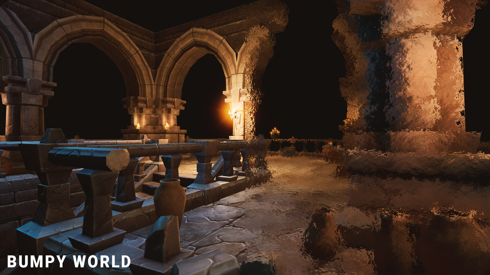 Explore the Bumpy World effect to add unevenness to your world or experiment with the Warp effect, allowing you to twist and distort your visuals in unique and imaginative ways.